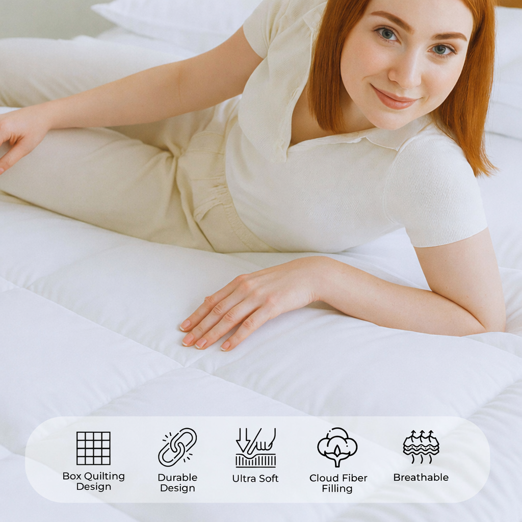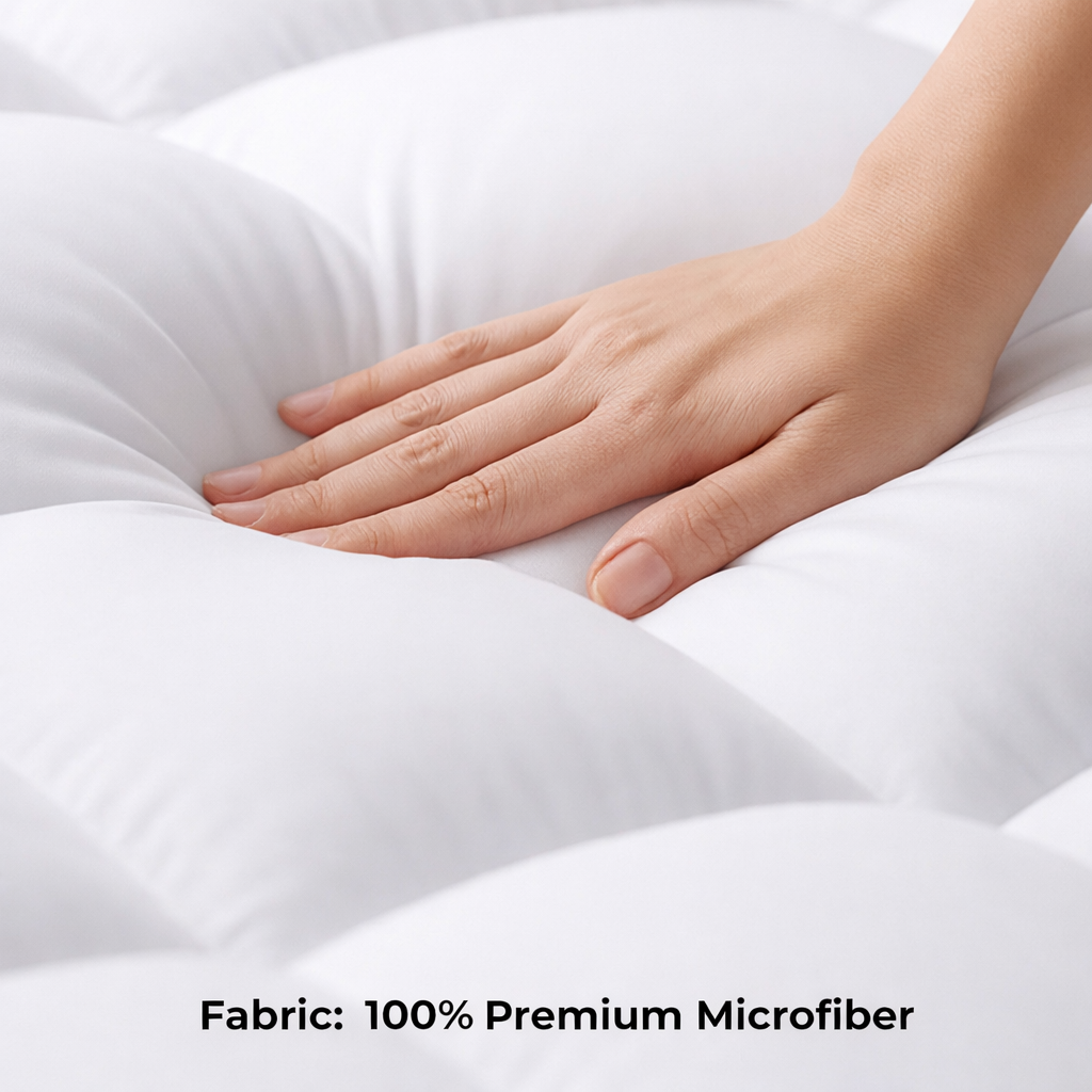Upgrade your sleep instantly with this premium microfiber mattress topper, designed to add luxurious comfort and support to your existing mattress. Crafted from 100% high-quality polyester fiber and filled with virgin hollow fibre, it delivers a soft, cozy feel while enhancing support for shoulders and hips to help relieve pressure and improve sleep quality.