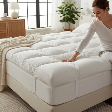 With an approximate 10cm (4-inch) thickness, this extra plush mattress topper transforms firm or worn mattresses without the need for replacement. The breathable and hypoallergenic construction allows better airflow, helps regulate temperature, and is ideal for sensitive skin and allergy sufferers.