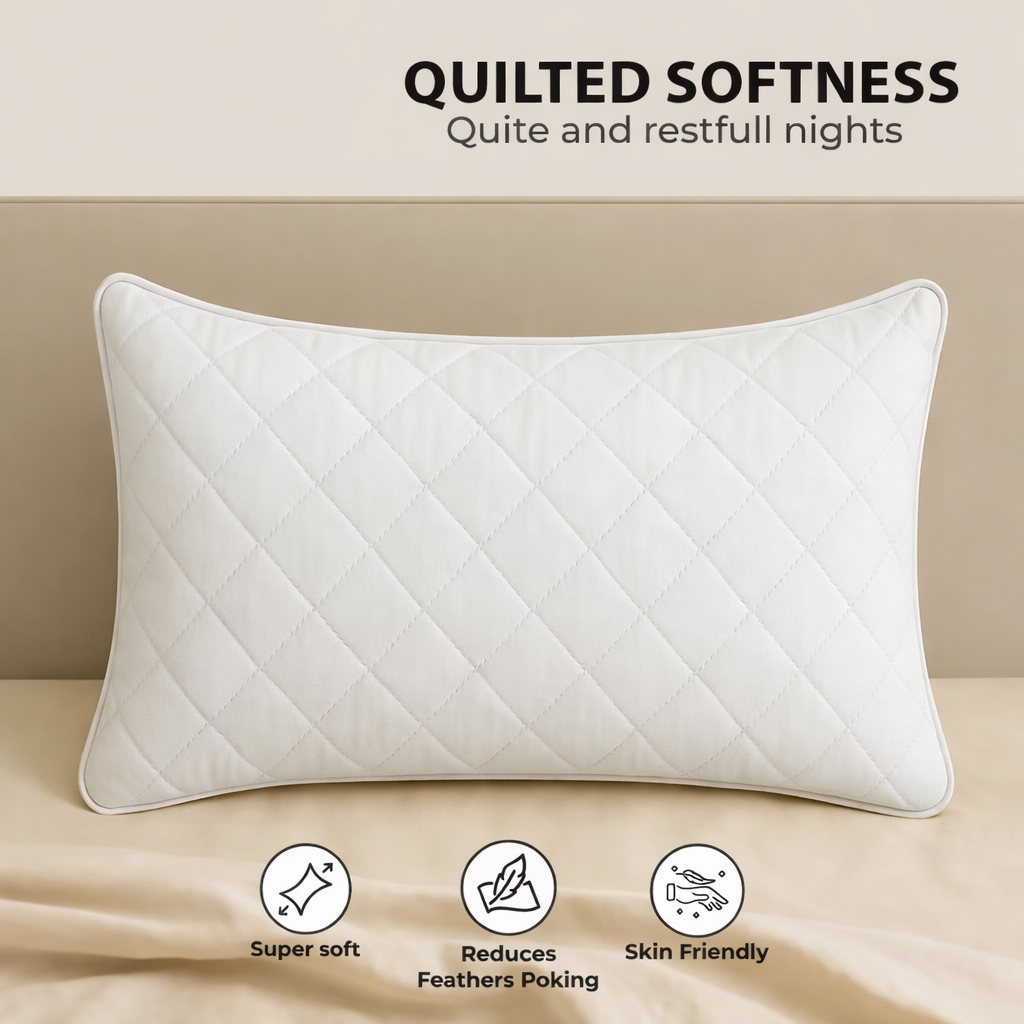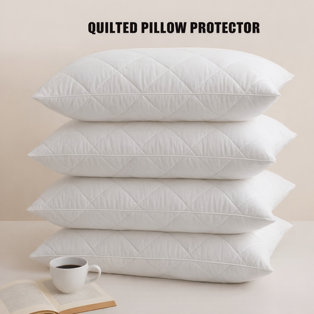 Keep your pillows fresh, soft, and long-lasting with our breathable quilted pillow protectors. Made from durable poly-cotton with a full zipper closure, they prevent feather leakage and add an extra layer of comfort. Perfect for everyday use, these protectors are ideal for duck, goose, and feather-filled pillows, available in convenient multi-pack sets for every home or guest room.