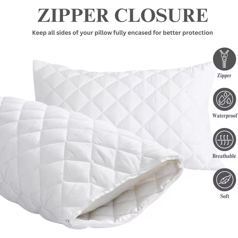 Upgrade your sleep comfort with our Zipped Pillow Protectors 2 Pack, crafted from 100% polyester quilted fabric to provide an extra layer of softness and durability. Designed to enhance your sleeping experience, these breathable pillow protectors help maintain a fresh, clean, and relaxing sleep environment every night.