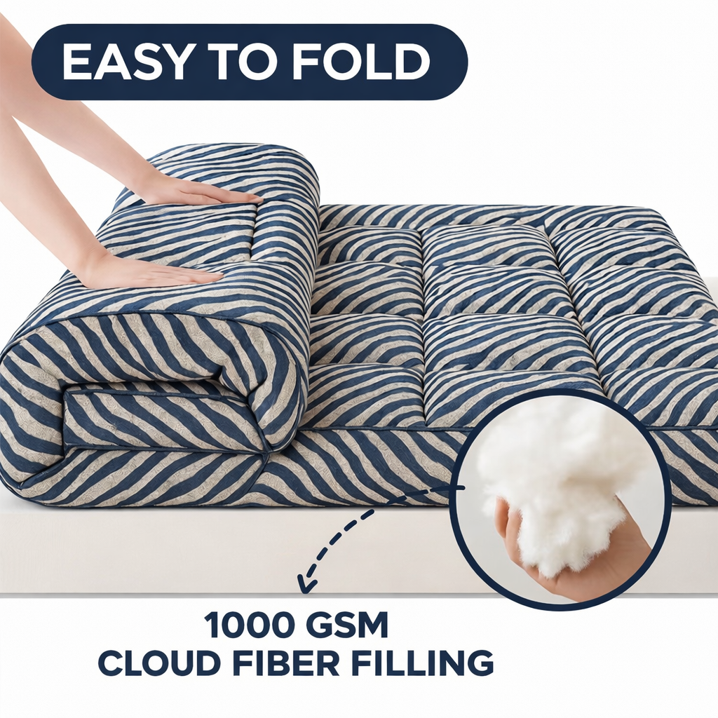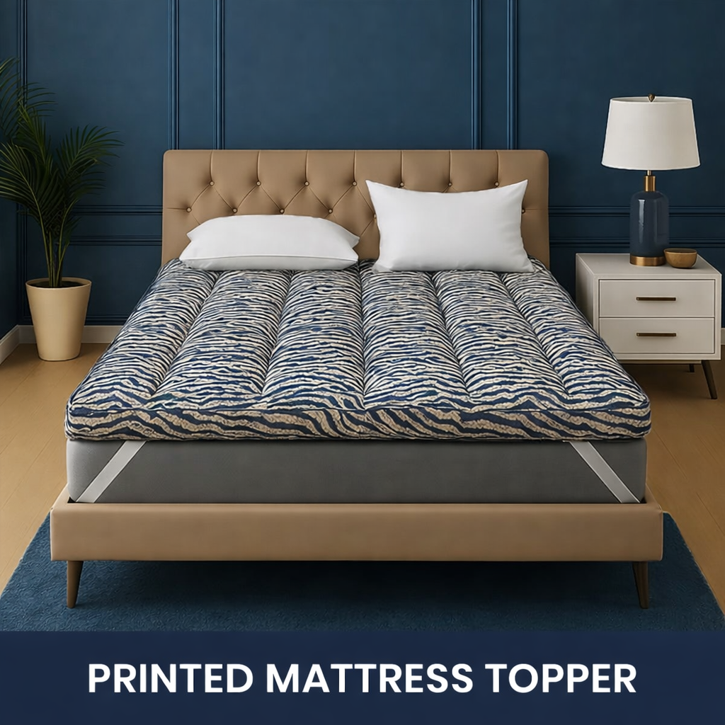 Upgrade your sleep with hotel-like comfort using this extra thick Zebra mattress topper filled with plush 1000 GSM cloud-fiber. It provides deep cushioning and pressure relief, helping reduce discomfort from firm or uncomfortable mattresses while improving overall sleep quality and nightly relaxation.