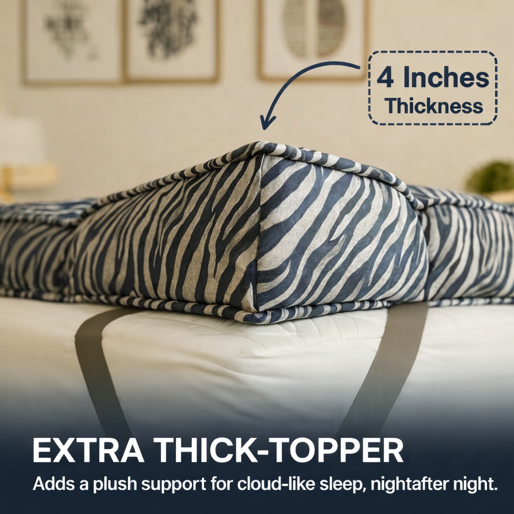 Zebra Mattress Topper 1000 GSM, Extra Thick & Box Stitched